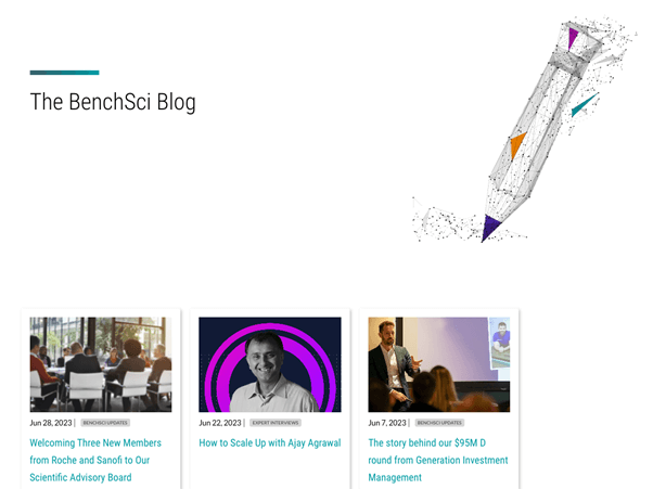 O uso de Machine Learning na BenchSci é tão importante que eles possuem um blog com muitos conteúdos referentes aos trabalhos que realizam em suas pesquisas. Vale a pena conferir a partir deste link.